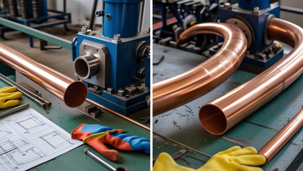 Studi Kasus: Pipa Ø 28 mm → Bending 90° (radius 84 mm) → Annealing → Tanpa retak.